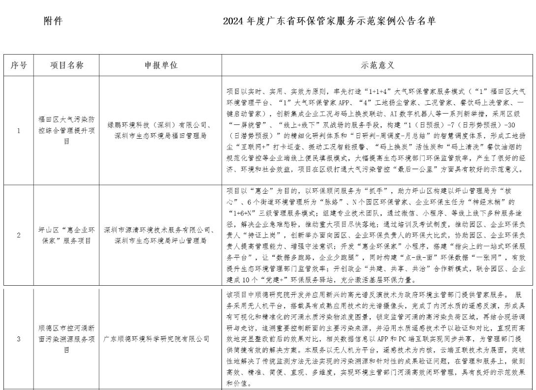 近日,廣東省環境保護產業協會公布了“2024年度廣東省環保管家服務示范案例”名單,我司承接的“乳源瑤族自治縣生態環境保護委員會辦公室環保管家服務項目”成功入選。